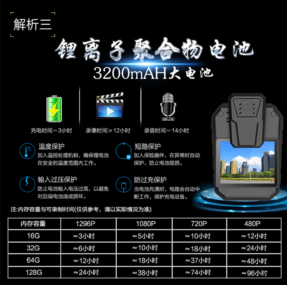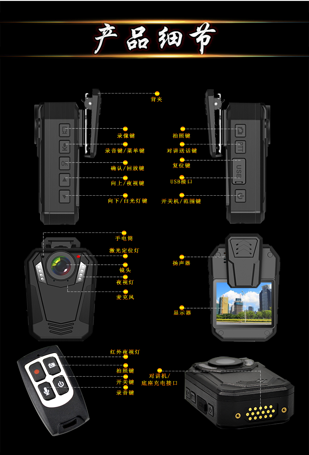 產品功能:紅外夜視;循環錄影;外接攝像頭;防水;防摔;防塵